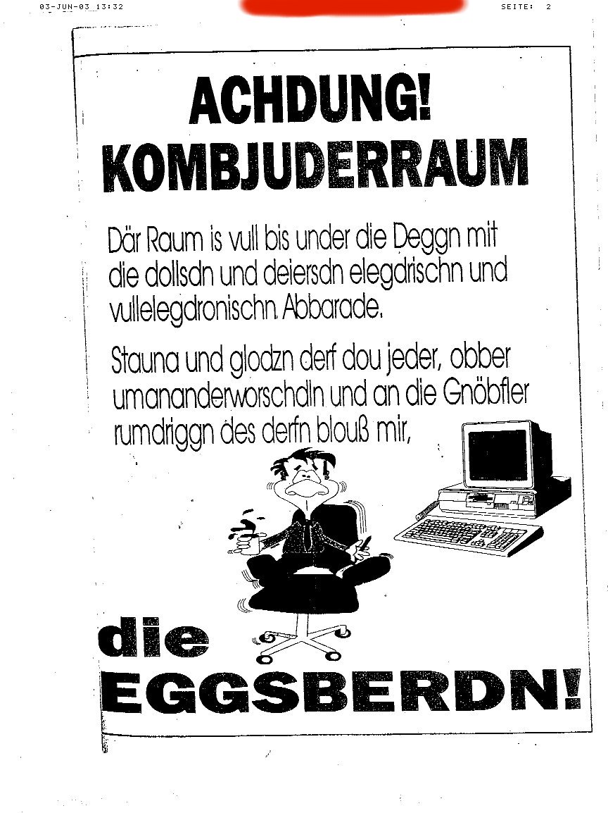 Vielleicht kennt ihr das ja auch schon. Es gibt gibt etwas auf sächsisch mit Computerexperten. Hier habe ich das ganze mal vorgelesen.